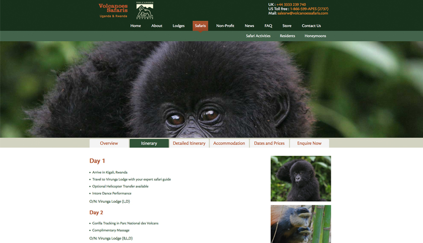 We built a website for Volcanoes Safaris to correctly represent the high end safari experiences that they provide to their clients and get them to inquire about information on the adventures.